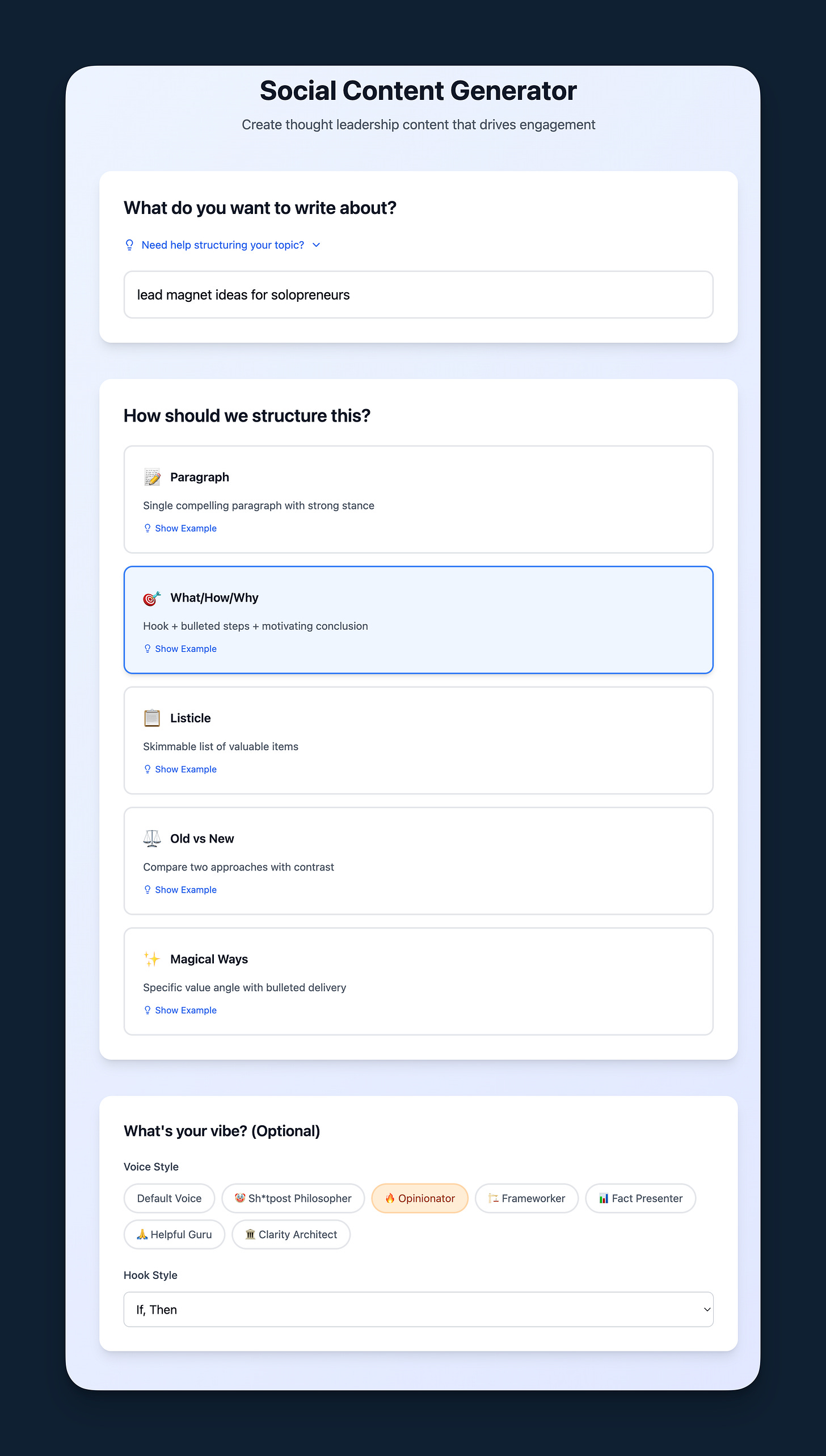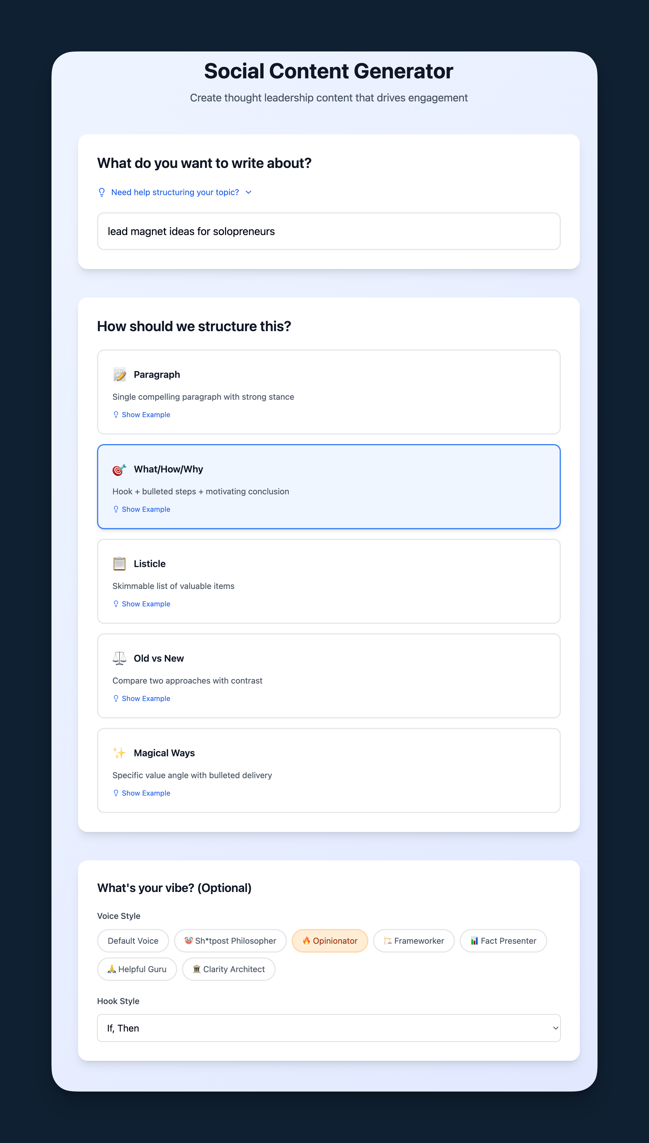 I turned my ghostwriting Social Content Generator "mega-prompt" into a fully functional Mini-SaaS app using nothing but Claude, Lovable, and Kit.
