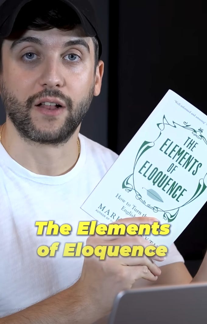 If you want to want write as concisely as Hormozi or Shakespeare, the Elements of Eloquence by Mark Forsyth is filled turns of phrase you can immediately action in your writing.